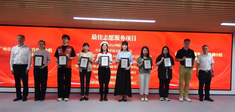 2025年4月22日,2024年度广州市志愿服务先进典型颁奖典礼暨沙龙交流活动在海珠区举行。活动对在志愿服务领域表现突出的集体和个人进行表彰,向"最美志愿者""最佳志愿服务组织""最佳志愿服务项目""最美志愿服务村(社区)"等先进典型代表授予荣誉奖牌。